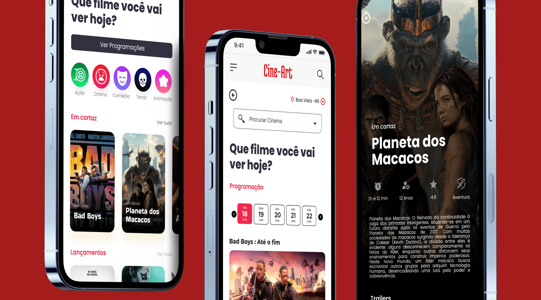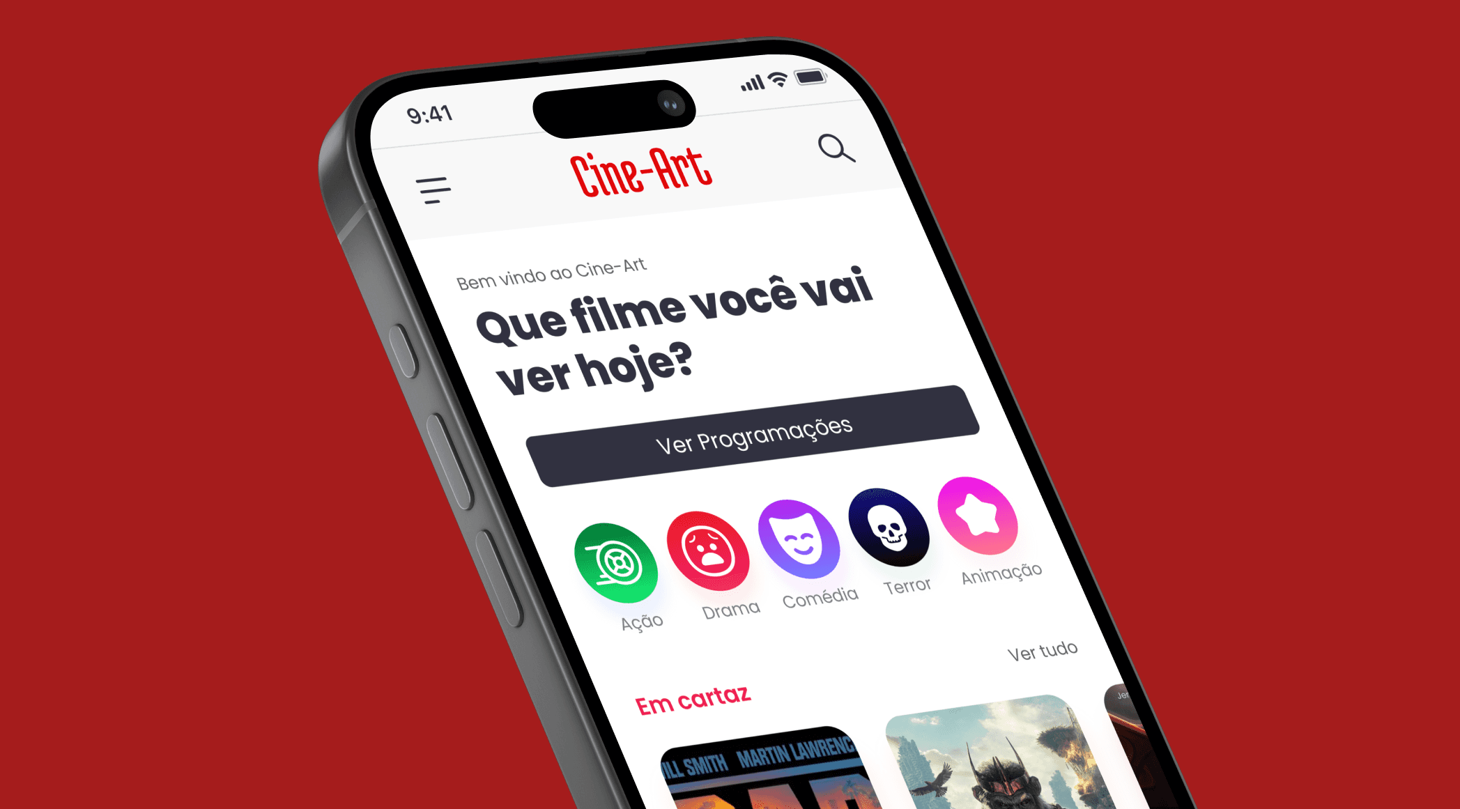 O Cine-Art é a prova de que um bom design resolve problemas reais. Criado para simplificar a vida de quem ama cinema, o app elimina a necessidade de múltiplas plataformas para escolher filmes e comprar ingressos. O sucesso do conceito levou à parceria com a DaliTech Solutions, que assumiu o desenvolvimento e lançamento do produto, levando a experiência simplificada do Cine-Art para o grande público
