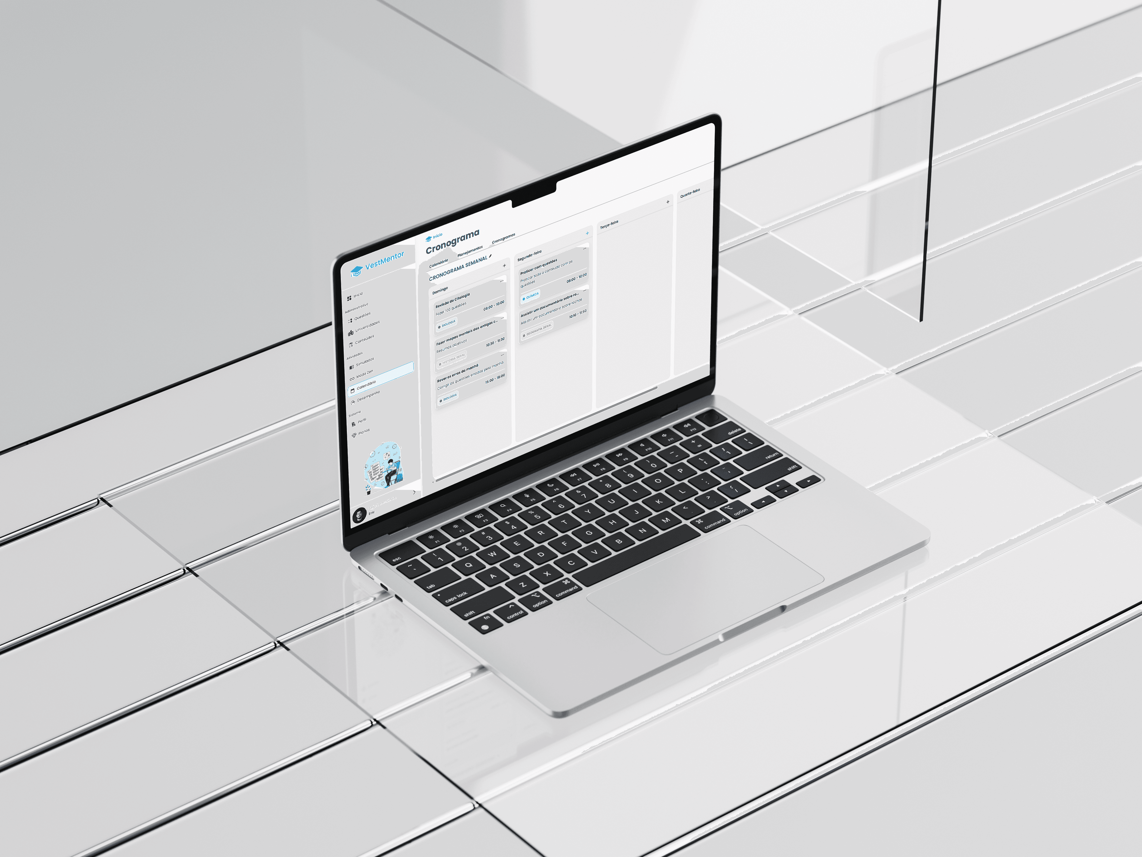 O VestMentor é uma plataforma de gestão de performance que coloca o estudante no comando. Ao contrário dos cursos tradicionais, não fornecemos aulas, mas sim a infraestrutura para medir a evolução. O sistema centraliza a organização da rotina e utiliza um vasto banco de questões como ferramenta de diagnóstico. Através de métricas personalizadas, o aluno consegue visualizar os seus pontos fortes e fracos em tempo real, transformando horas de estudo subjetivas em dados objetivos de crescimento.